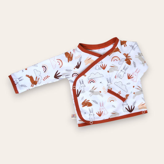 Conjunto pantalon, kimono, gorrito y patucos conejos blanco