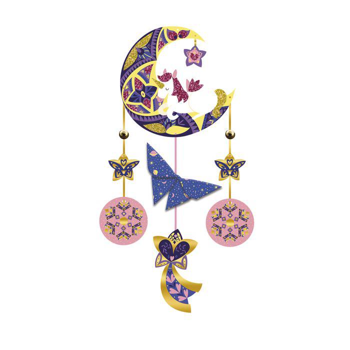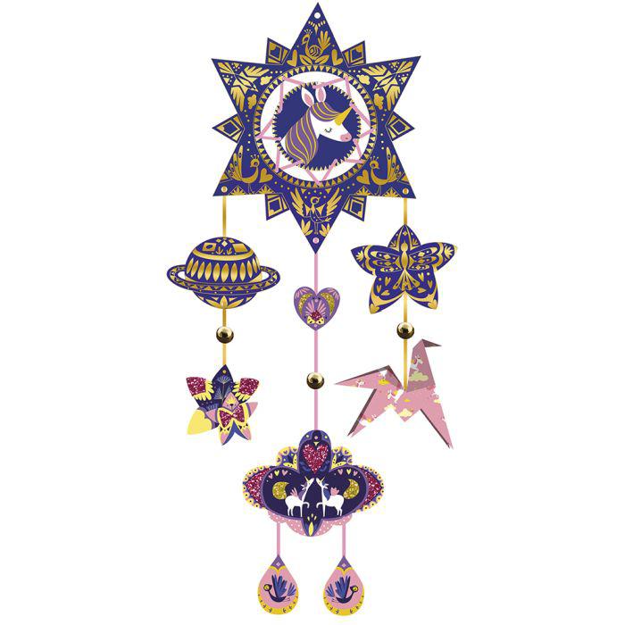 El Kit de 3 Atrapasueños Brillantes Unicornios de Janod es una actividad completa que utiliza diferentes técnicas de manualidades (rascado, purpurina, detalles dorados y origami) para que los niños dejen volar su imaginación y decoren su espacio con sus propias creaciones mágicas.