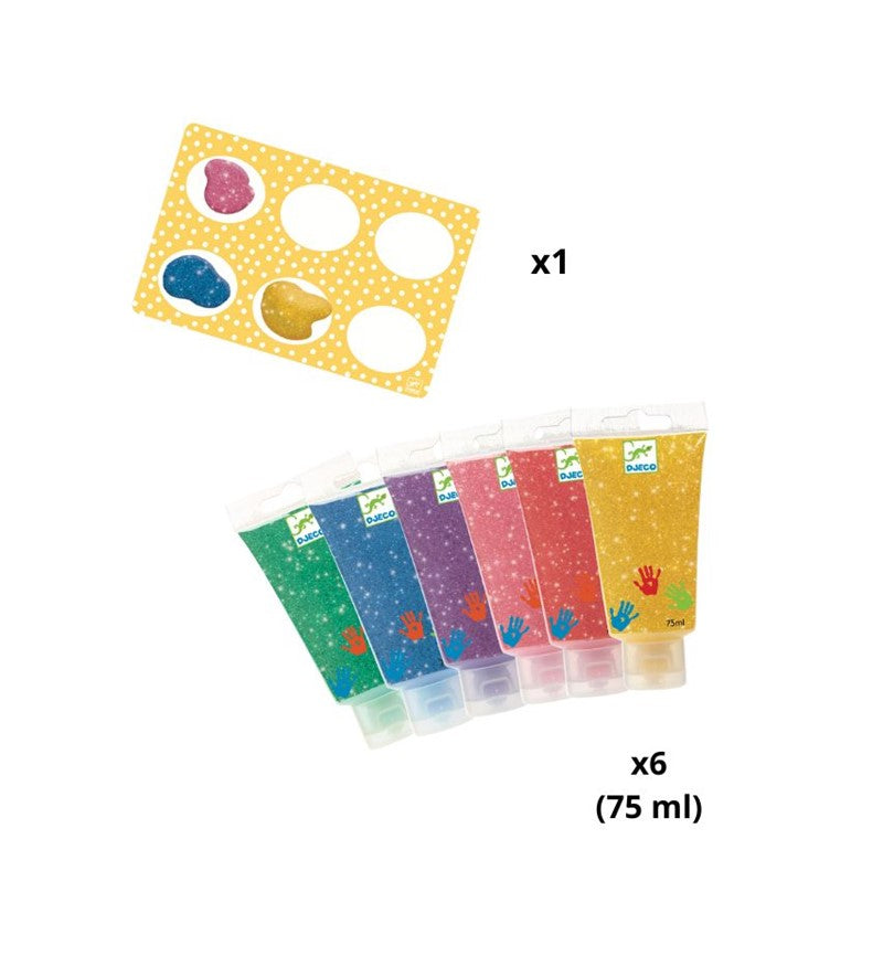Djeco - Set de 6 Tubos de Pintura de Dedos con Purpurina