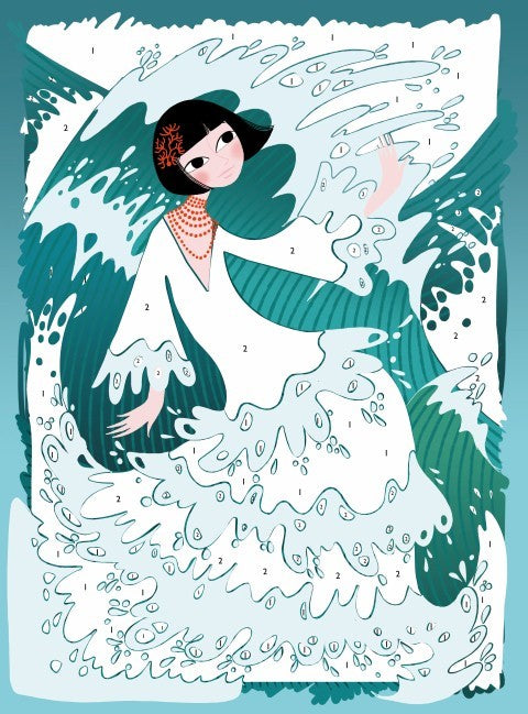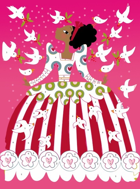 Aplica la purpurina con precisión usando los tubos (como pequeños saleros), siguiendo el código de colores del folleto.
