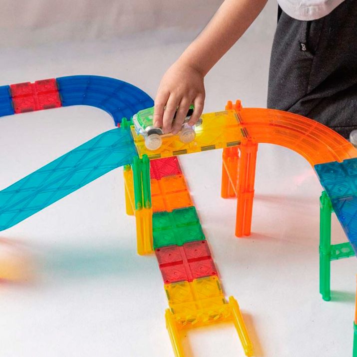 Imanix no solo permite la creación de pistas de carreras, sino que también brinda la posibilidad de construir formas en 2D y 3D, desde figuras planas, animales, flores, vehículos y torres, hasta castillos y mucho más. Además, los niños pueden dar rienda suelta a su creatividad formando letras, números, polígonos, patrones de figuras y operaciones matemáticas, lo que convierte este juego en una herramienta educativa versátil.