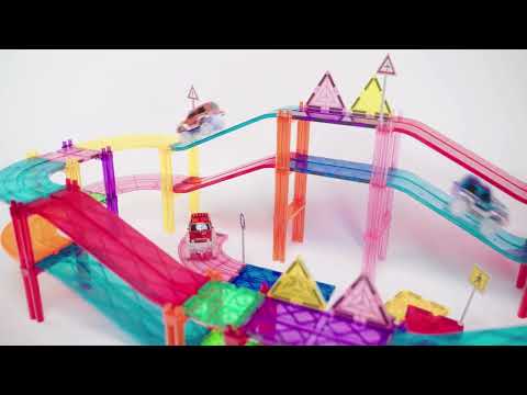 Con esta selección de piezas, los pequeños constructores pueden dar rienda suelta a su imaginación, formando circuitos con emocionantes curvas, cuestas, desniveles y puentes, ideales para hacer circular los coches y explorar un universo de entretenimiento.