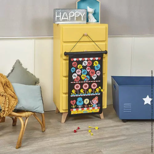 ¡Todos a jugar a la diana con total seguridad gracias a estos dardos magnéticos aptos para niños a partir de 4 años! Se acabaron los dardos que pinchan: esta versión magnética se pega como por arte de magia a la diana. ¡Son perfectos para competir con toda la familia en un ambiente de feria! ¡Habrá que echar mano de toda su destreza y concentración para apuntar bien y ganar más puntos! La diana se cuelga fácilmente de la pared gracias a la cuerdecita. Así se puede llevar sin problemas dentro o fuera de casa. ¡Y además la diana tiene dos caras para tirar los dardos a dos ilustraciones distintas! Además de ser lúdico, este juego de habilidad es perfecto para trabajar la destreza y la concentración del niño. Este kit consta de 6 dardos magnéticos: 3 rojos y 3 amarillos.