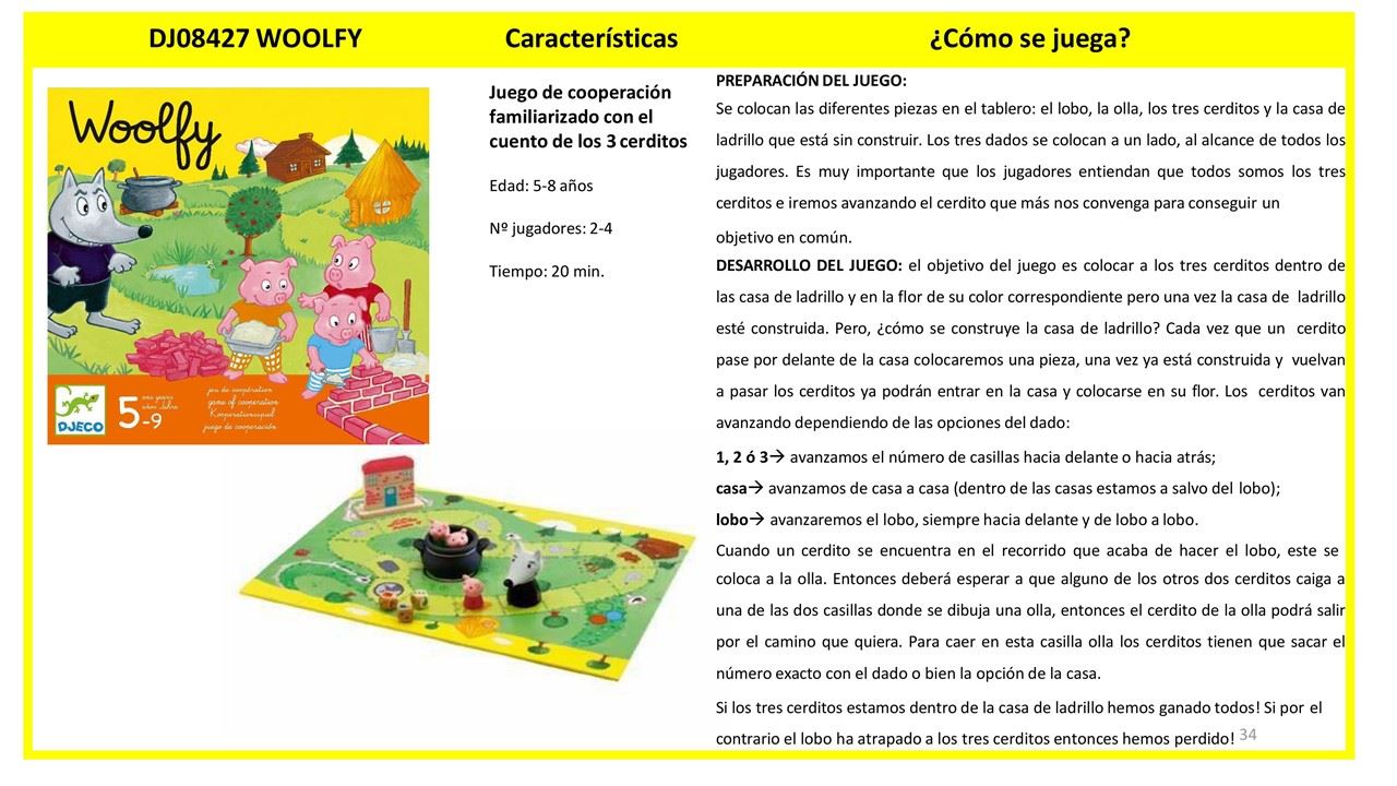 ¡Uníos a los tres cerditos en una emocionante carrera contra el reloj! Wolfy es un juego de mesa cooperativo basado en el clásico cuento que pondrá a prueba el trabajo en equipo de todos los jugadores. ¿Conseguiréis construir la casa de ladrillos antes de que el lobo capture a los tres cerditos y los meta en la olla?