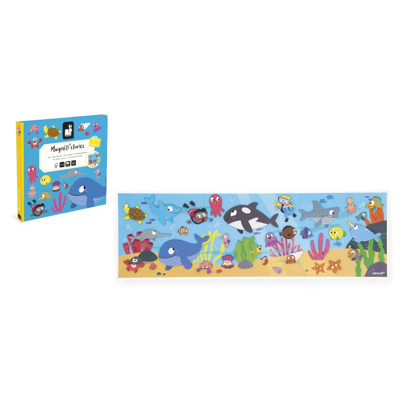 ¡Sumérgete en una aventura submarina con este libro magnético! Tu peque podrá explorar las profundidades del océano y crear sus propias historias con delfines juguetones, estrellas de mar curiosas y muchos otros habitantes del mar.