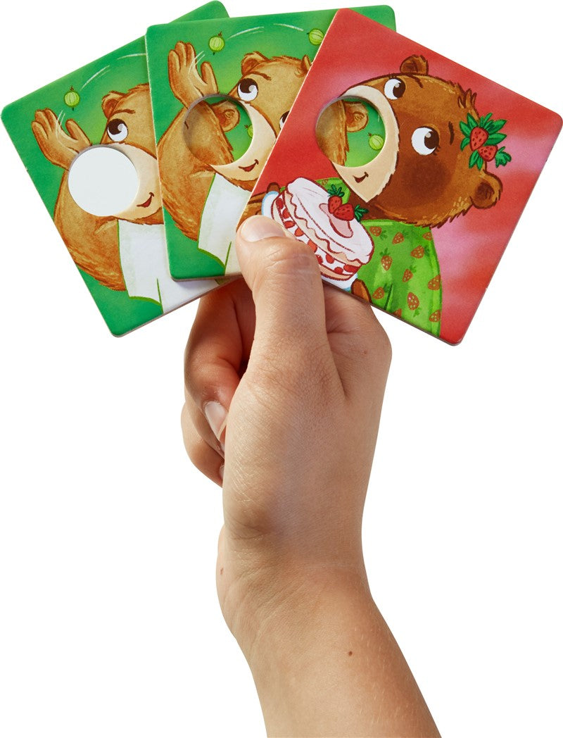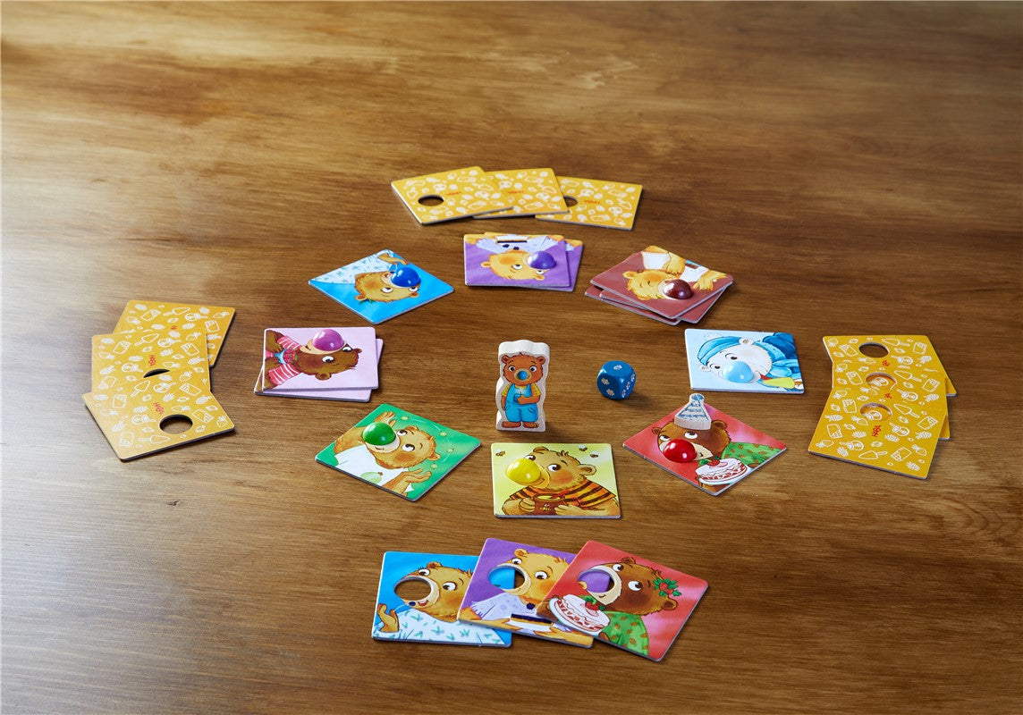 En este festivo juego, el objetivo es ser el primero en deshacerte de las 6 cartas de osos que tienes en la mano. Por turnos, lanzarás el dado y, con un poco de suerte y buena puntería, deberás colocar tus cartas de osos sobre la nariz del color correspondiente en la figura del Oso Napi. Las 8 narices y la figura del oso son de madera de alta calidad, lo que añade un toque táctil y duradero al juego. ¡Un sombrero de fiesta está listo para el Oso Napi, y habrá fichas de regalos para los participantes!